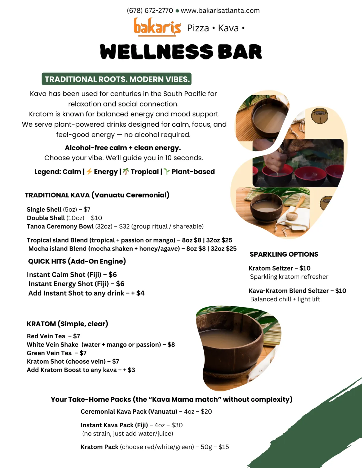 Alcohol-free kava bar